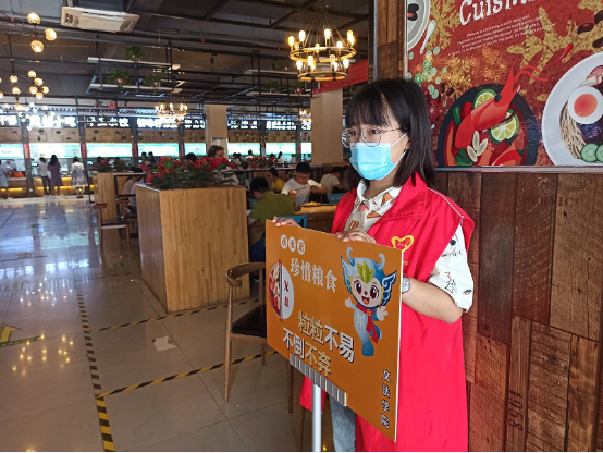 文法学院“环手爱”志愿者组建“节约用餐宣传队”,广泛宣传习近平总书记对制止餐饮浪费行为的重要指示精神,弘扬“爱惜粮食,拒绝浪费”的勤俭节约思想;在中午、晚上用餐高峰期,走进食堂呼吁同学们减少餐桌浪费,共同制止餐饮浪费行为;针对剩饭剩菜的同学,普及节约粮食的重要性,提倡从自我做起践行“光盘行动”;积极动员全院学生参与学校倡导的“爱惜粮食,拒绝浪费”光盘打卡活动,提高同学们参与活动的主动性。