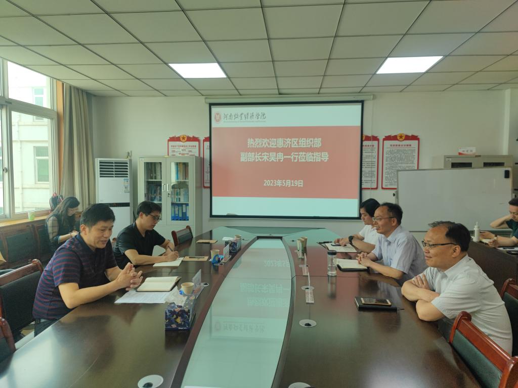 会上,贾宪军对宋昊冉一行的到来表示热烈欢迎,并就工商管理学院重点学科团队及郑州市社科重点基地“人才发展与管理”建设情况进行了介绍,希望双方依托重点学科和社科基地,在惠济区人才引进、文旅文创等领域开展合作研究,为惠济区发展提供智力支持与人才支撑。宋昊冉分析了目前惠济区产业发展与人才引进出现的瓶颈问题,希望贾宪军能充分发挥“惠济十佳英才”的专家优势,推动校地双方深入交流与合作,共同为夯实惠济区产业转型升级出谋划策。